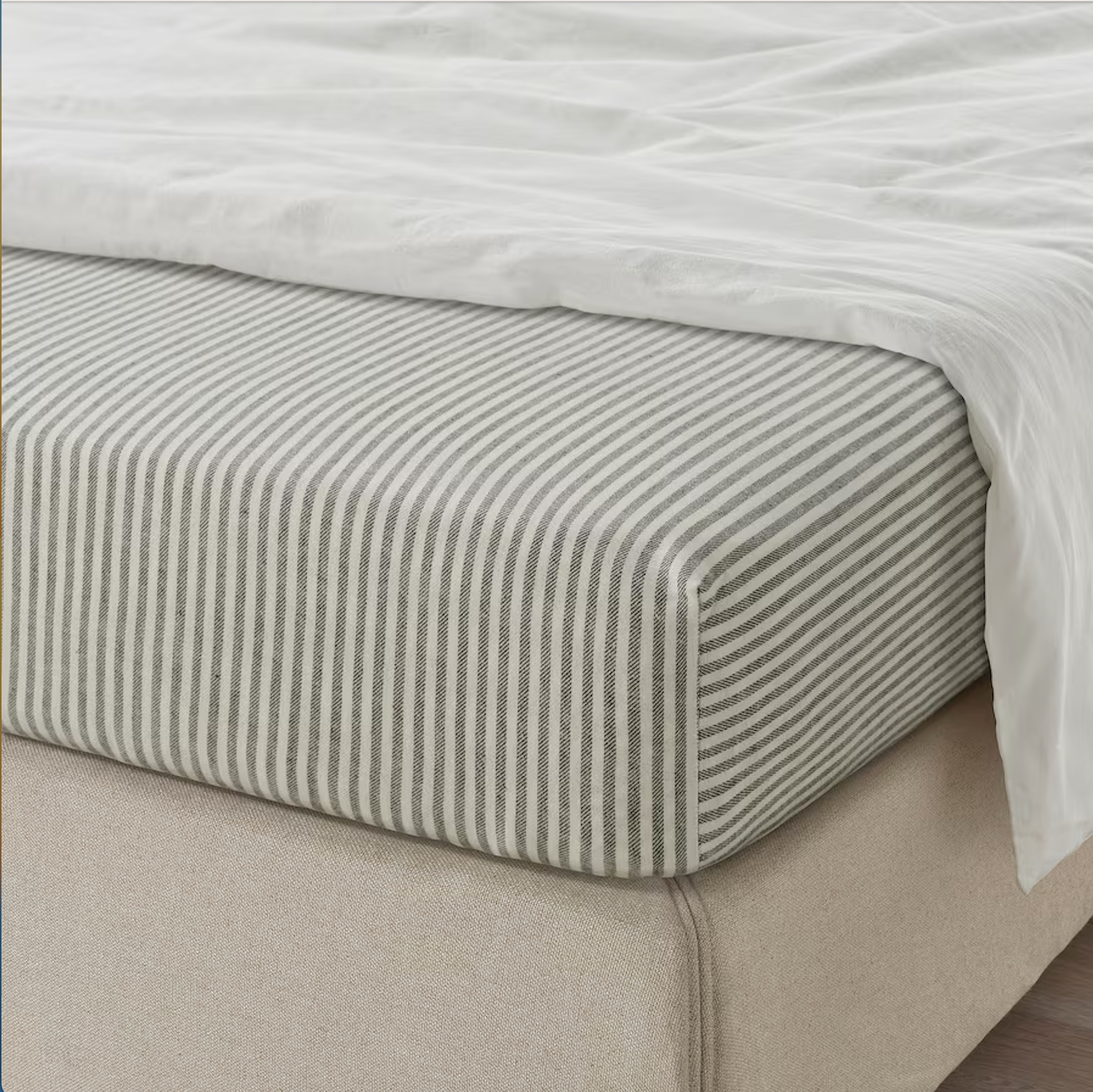 Fits mattresses with a thickness up to 10" since the fitted sheet has elastic edging all around.
