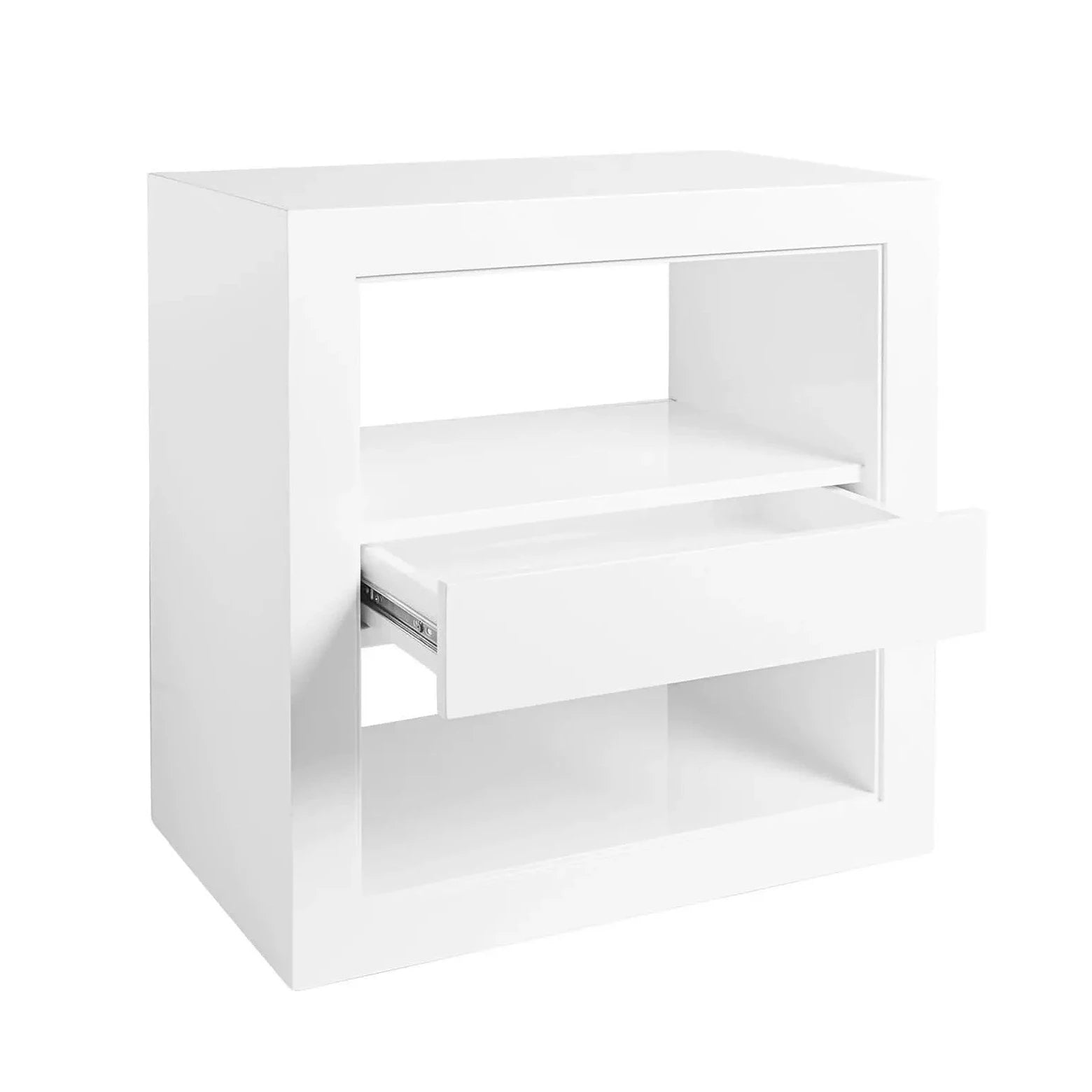 - Made of engineered wood and premium oak veneer with a glossy, lacquer finish.