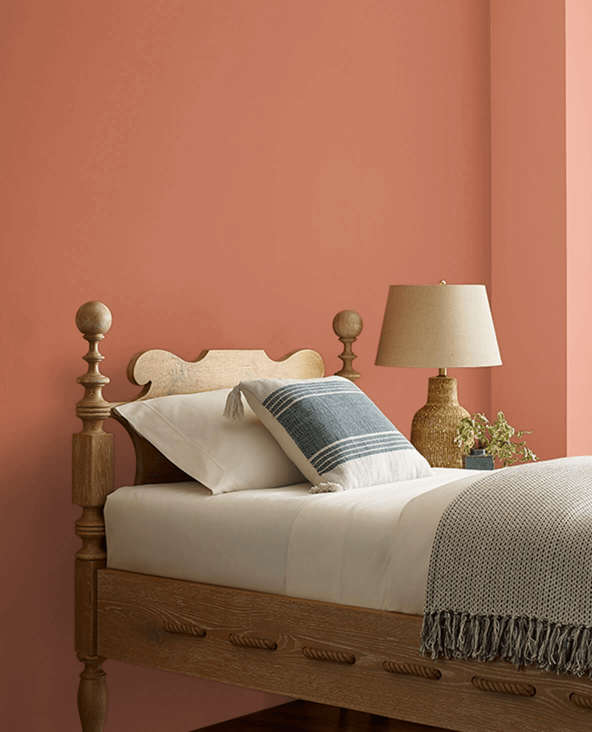 This deep, earthy orange wraps any room in its warm glow. We often see this hue used as the base of a Southwestern or rustic color scheme.