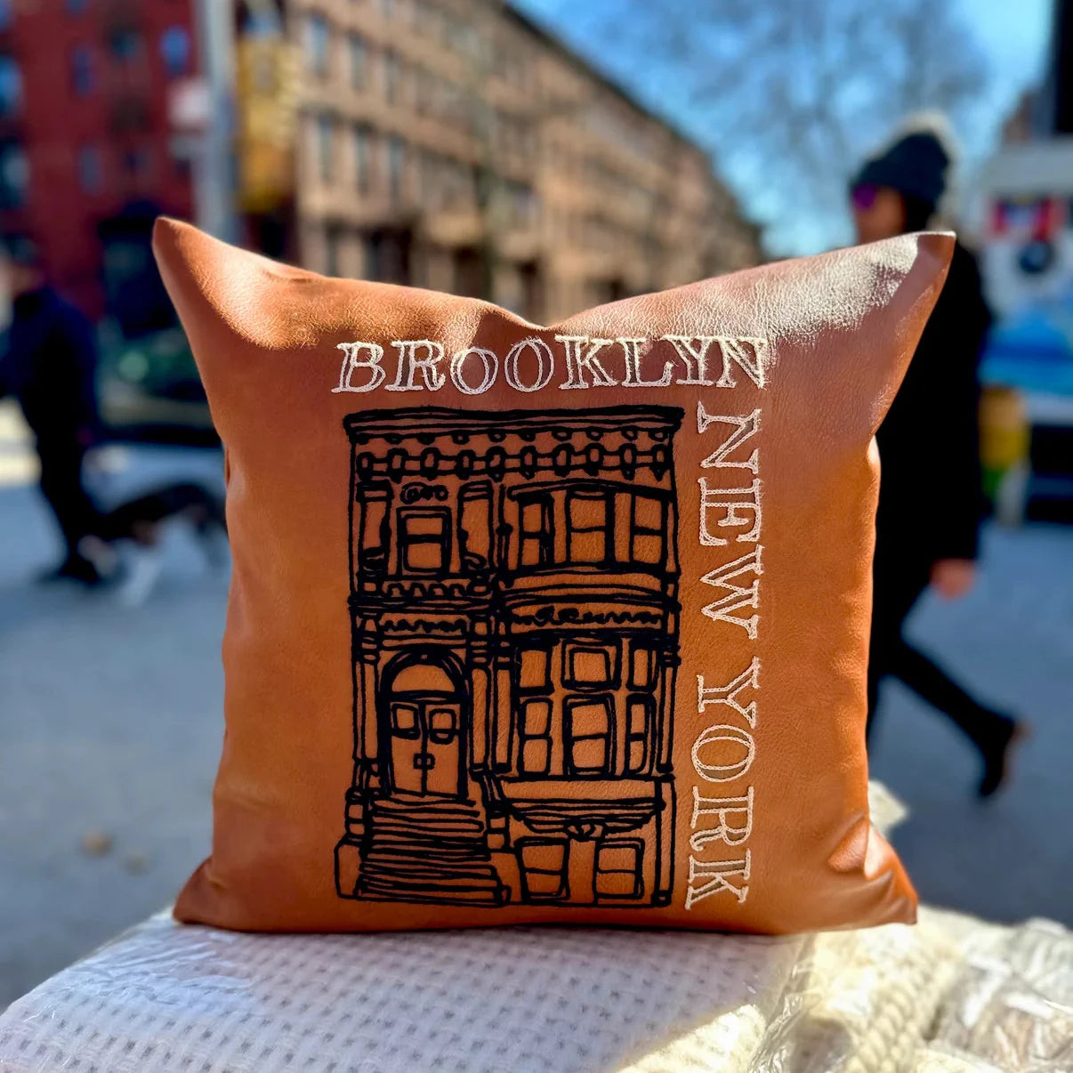 Brooklyn Brownstone 18x18 faux leather embroidered throw pillow cover