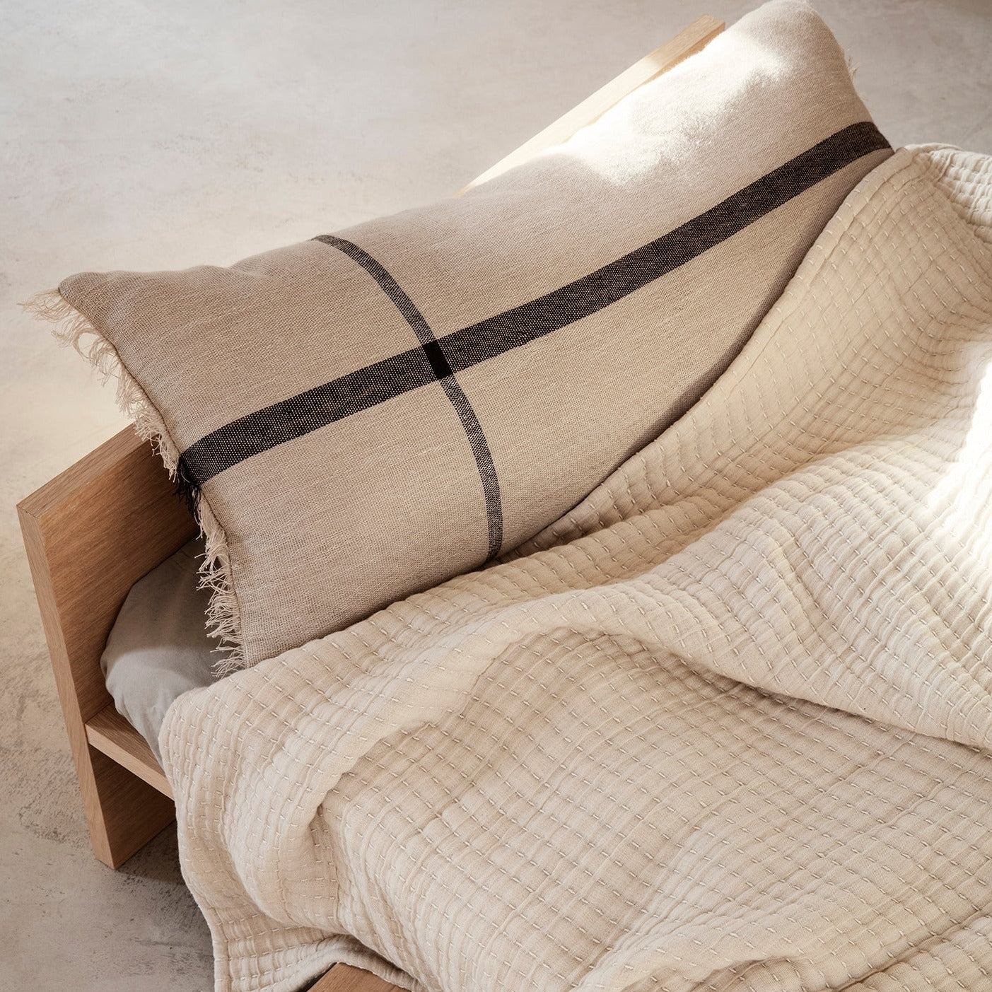 Like its name suggests, our Calm series of plush cushions adds a feeling of tranquillity to a space thanks to its muted hues and soothing lines. Available in three sizes to ensure you can find the perfect proportion to suit your needs, each is versioned in three patterns: striped, regular check and oversized check. The understated design is made from tactile cotton-linen and detailed along two edges with fringed trim.