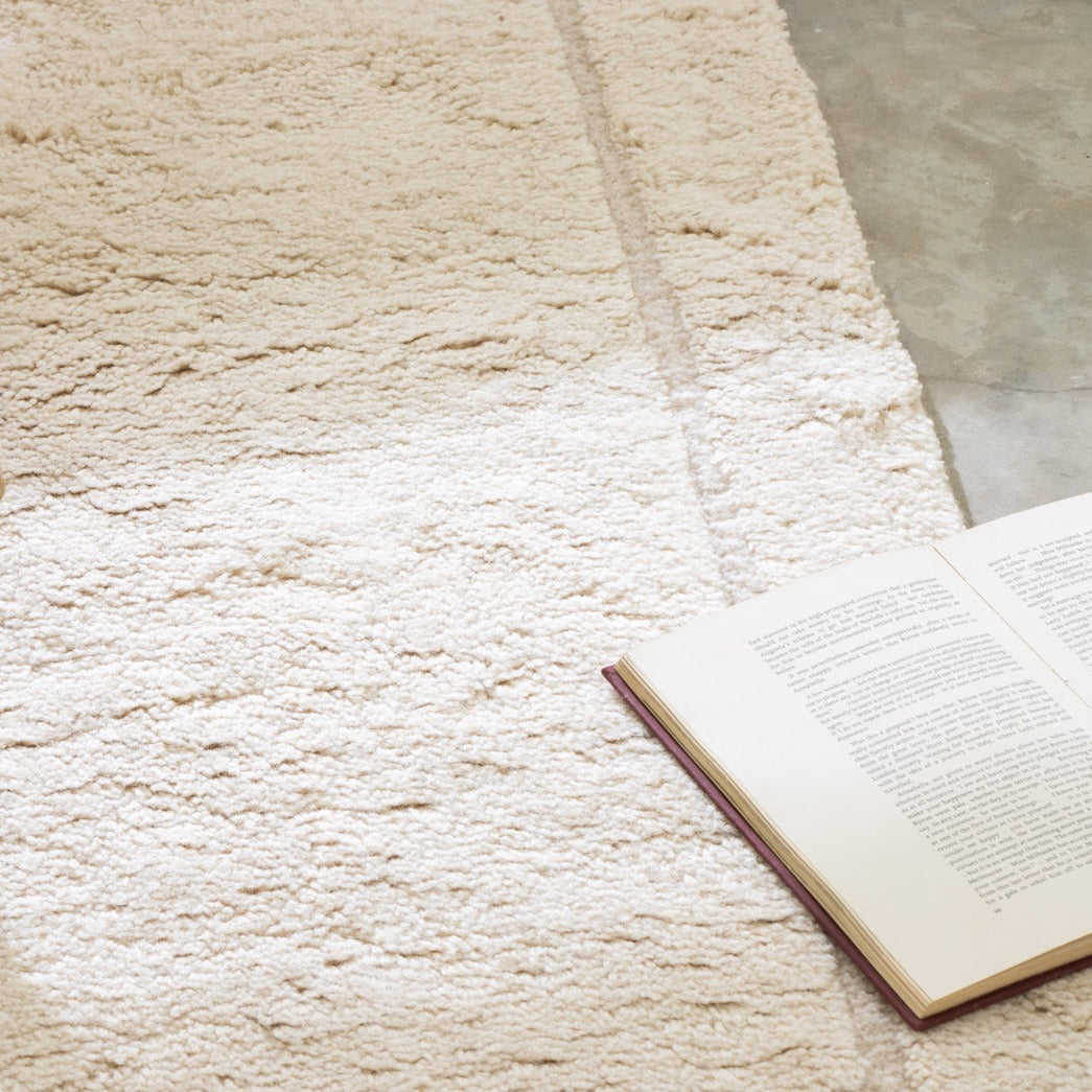 A soft, high-pile washable wool rug. As such, we *highly* recommend you pair it with a rug pad for stability, comfort, and longevity. Trust us it's worth it. We recommend you pair this piece with a rug pad for comfort and longevity. This piece can be thrown in the washer!