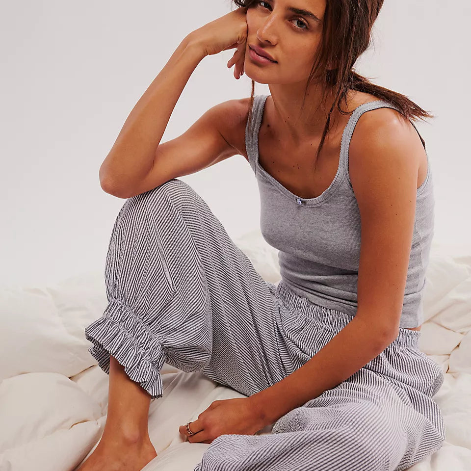 All you need for the sweetest sleep: this essential set from Intimately features a darling ribbed tank with our fav Cloud Nine searsucker bottoms in a jogger style for a put-together look that dreams are made of.