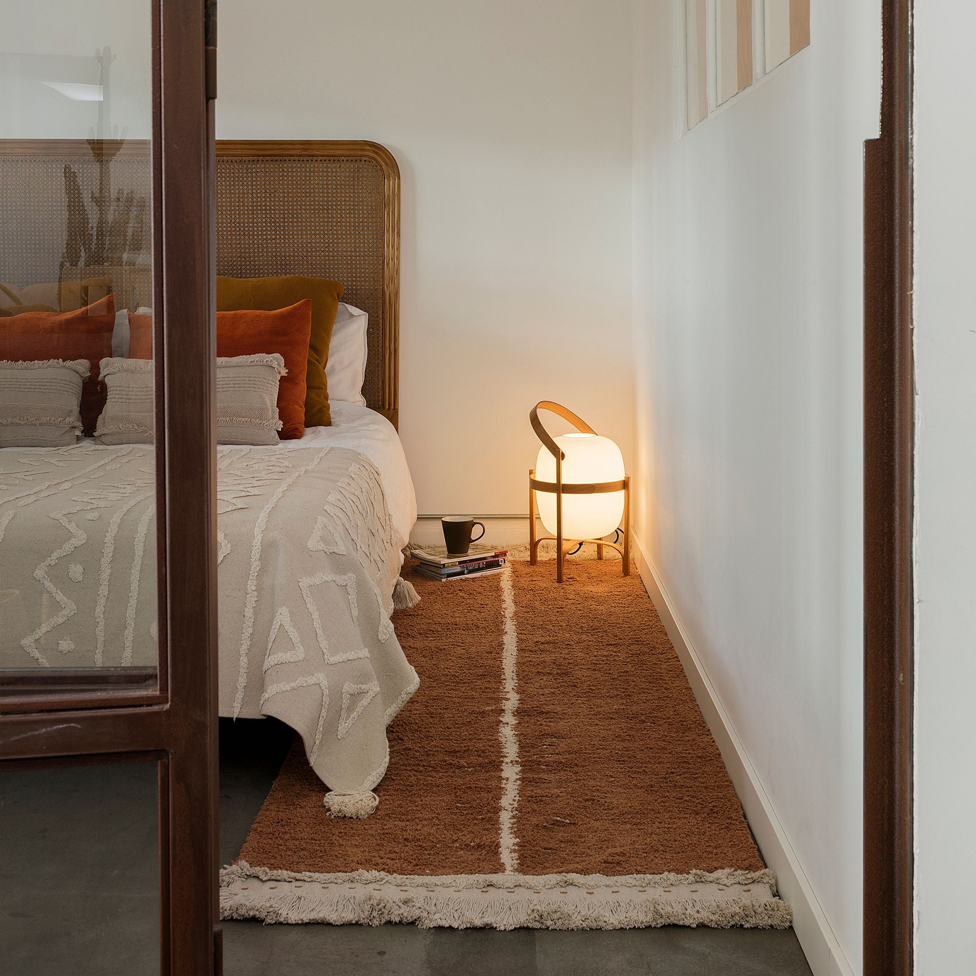 - Its warm, natural colors and subtle fringes.