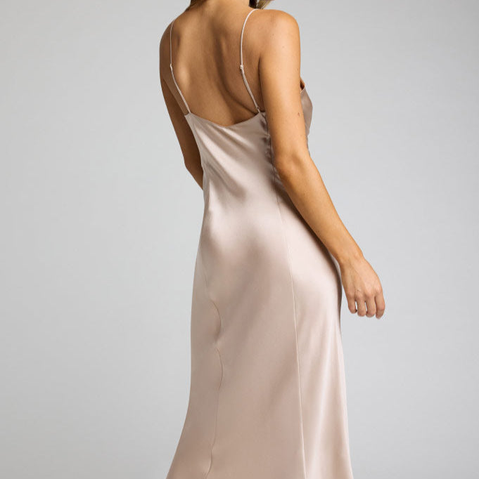 Classic and refined. Slip into it. Their elegant and sophisticated take on the silk slip that hugs your body in all the right places.