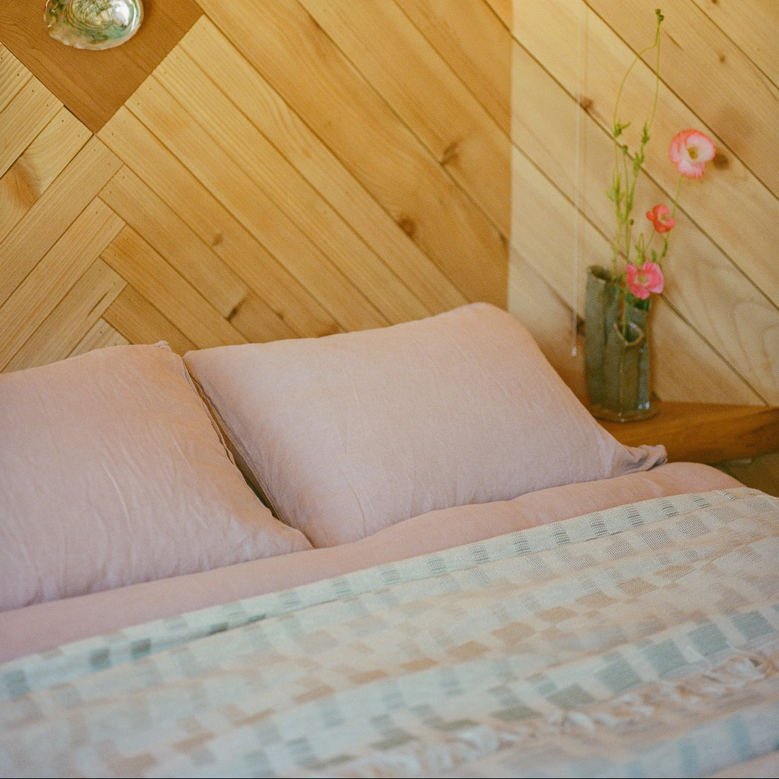 Each design is crafted by our founder Anna in Los Angeles, inspired by global textile traditions. Created with versatility in mind, these textiles can be used in both traditional and modern settings. They are woven on a dobby loom by a women-run mill in Bristol, England.