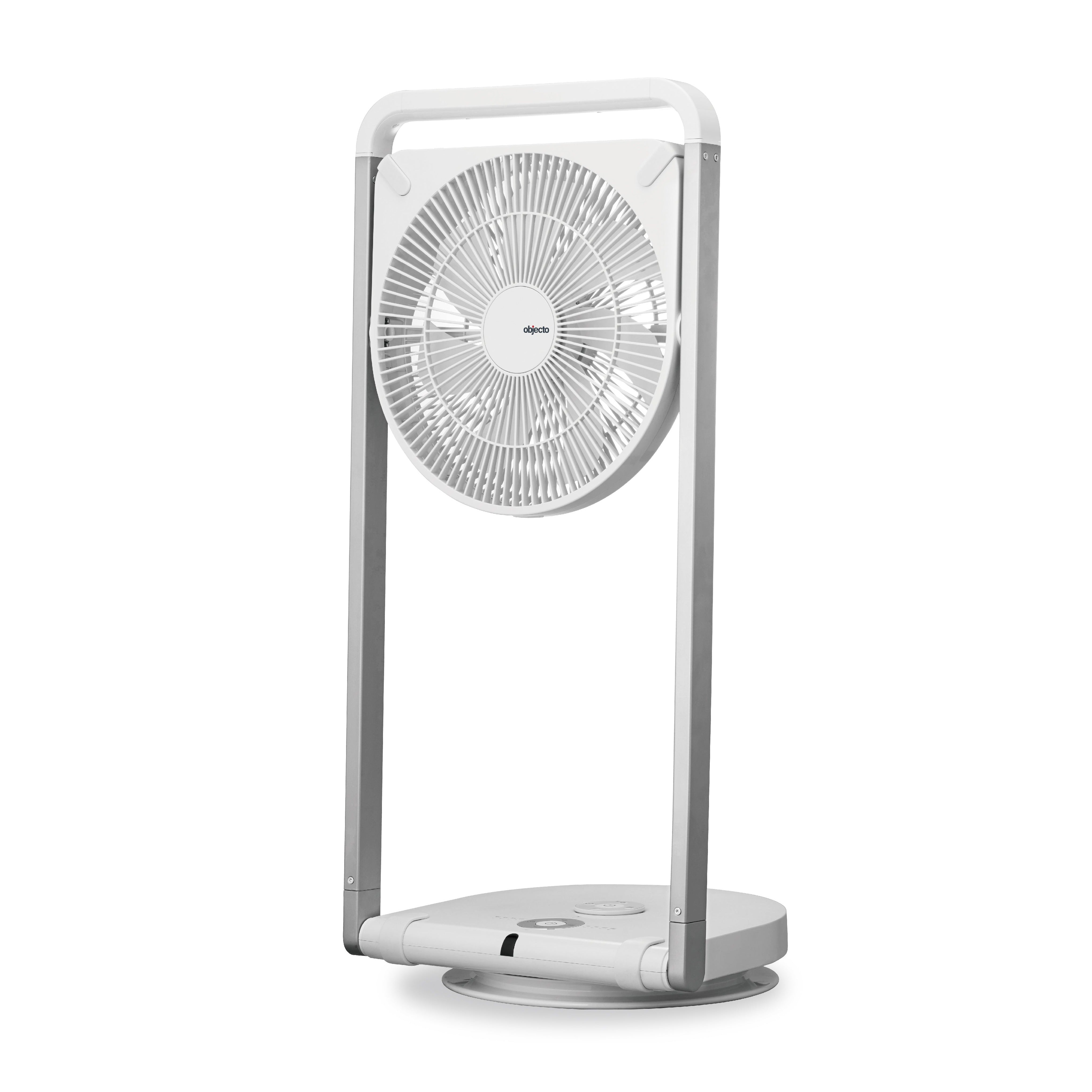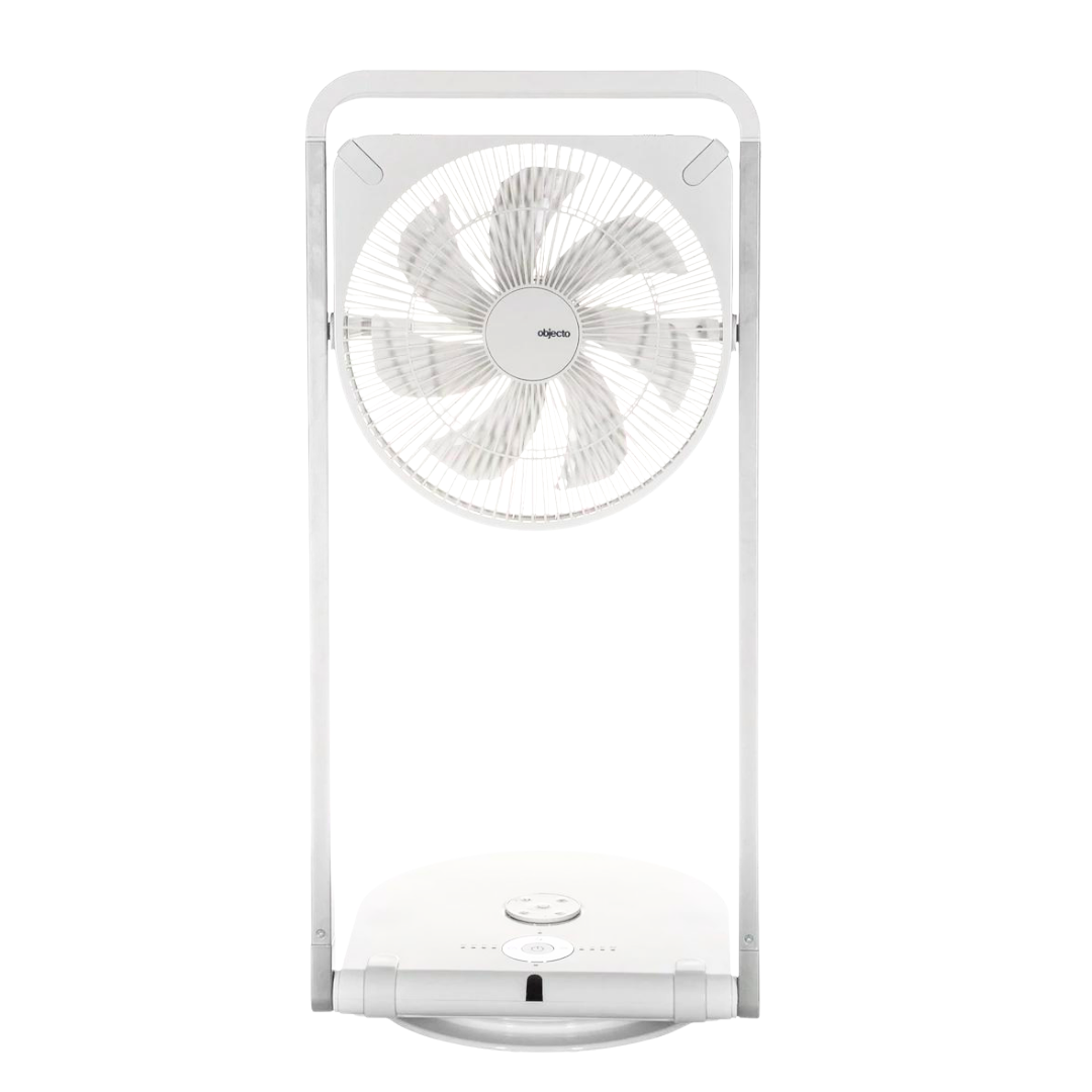 Unfold and plug in for silent and even airflow with the Objecto F1. This DC motor-operated fan features the quietest operation. This slim framed fan can fold flat for easy storage and includes a convenient remote control.