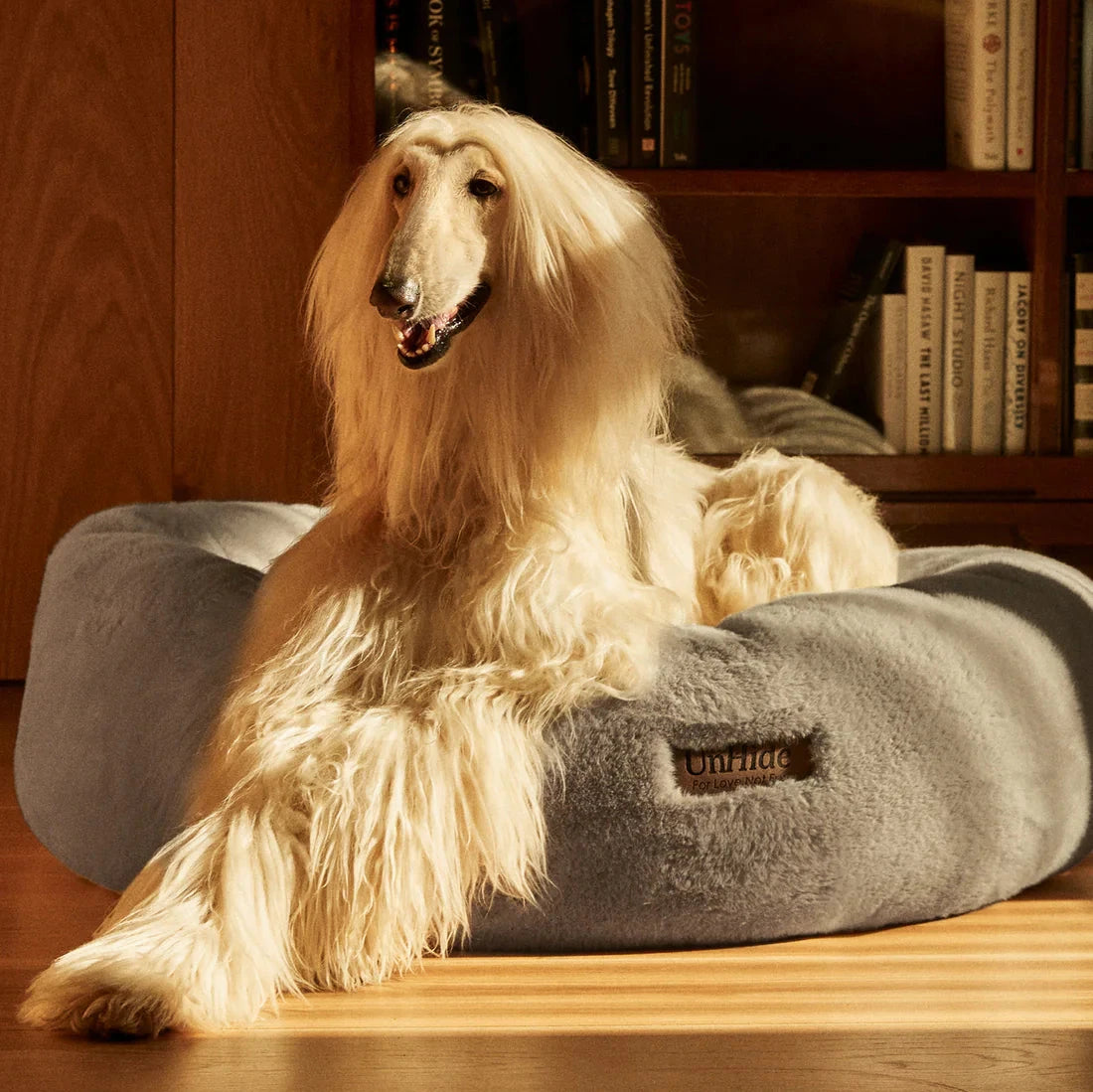 This new orthopedic Floof Pet Bed is made with UnHides unbelievably soft, cruelty-free Marshmallow faux fur. Its so cozy, you might just be tempted to give up the couch. The Floof is specifically designed for your pets needs. The bolstered sides give them extra physical and emotional support, making a headrest thats almost as good as your lap.
