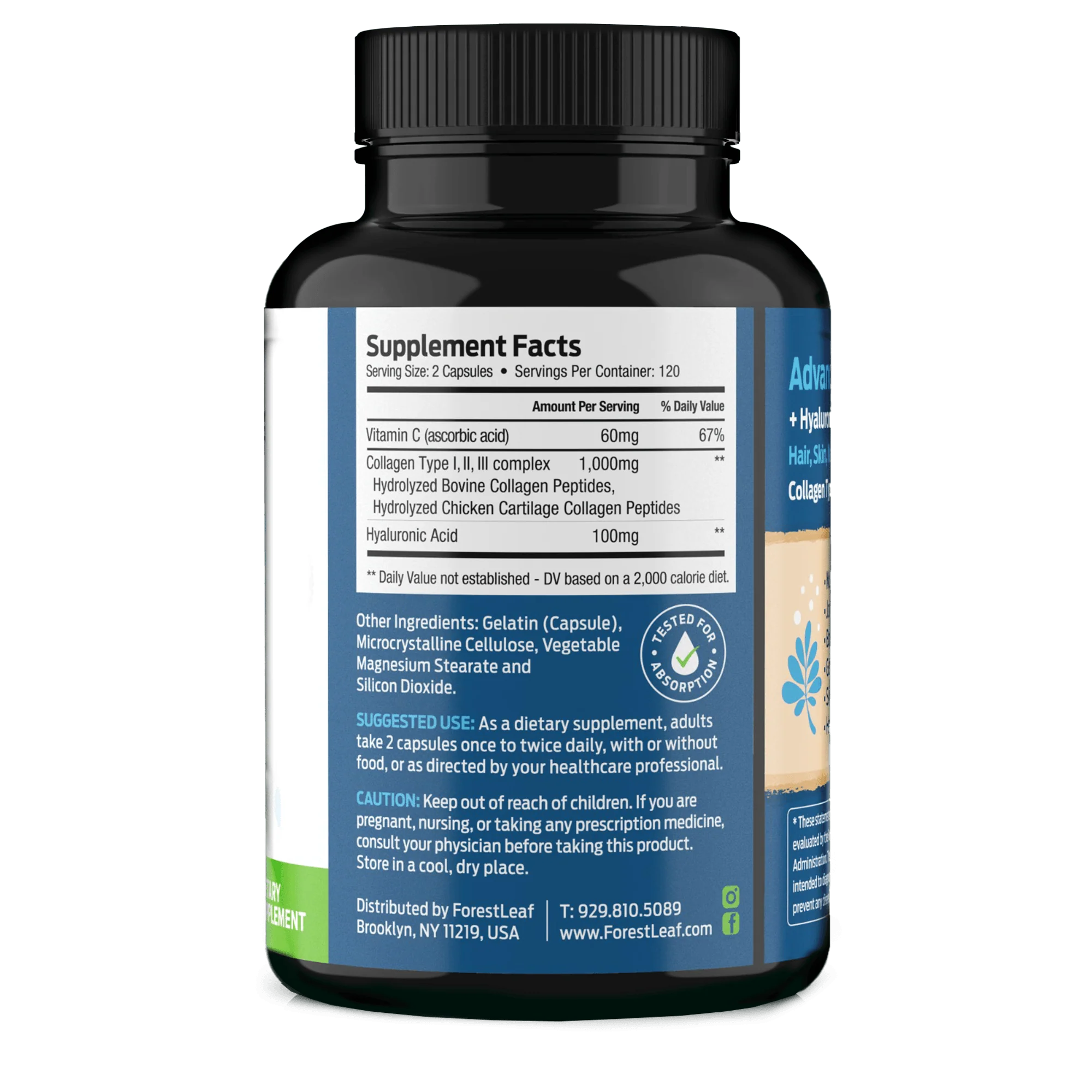 ACTIVATING AMAZING ANTI-AGING Unlock the secret to anti-aging! Collagen protein is responsible for creating the cellular scaffolding that makes up bones, joints, tendons and tissues.ForestLeaf Advanced Collagen improves hair thickness and length, strengthens nails, and reverses wrinkles and other signs of aging.