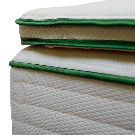 Our Harvest Green Topper is constructed of Dunlop latex rubber. Harvest Green mattresses contain wool and organic cotton. We avoid using polyurethane foams or toxic fire retardants. There are two firmness levels to choose from: Soft or Firm.