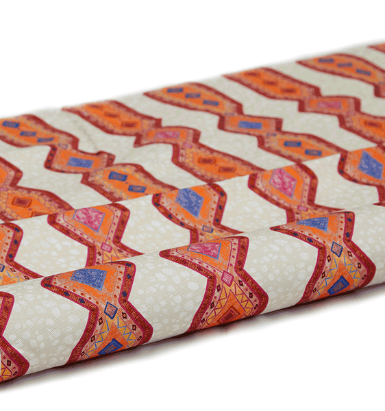With its light beige batik base and bright orange and blue geometrical pattern with yellow details, the Ife pouffe will spread love and positive energy in any setting, whilst being durable enough for everyday use.