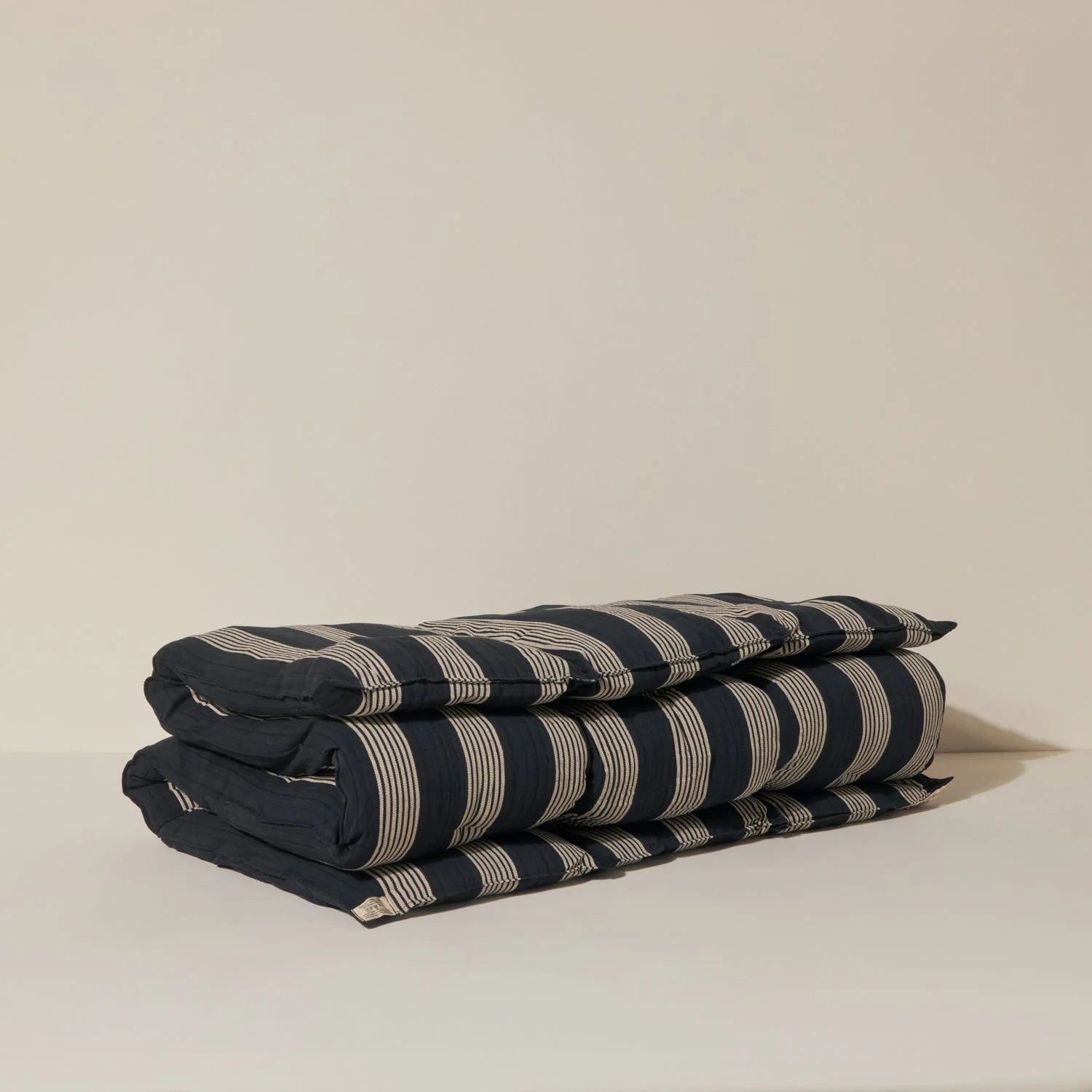 Lightweight, slim and ultra-comfortable, this mattress provides a soft overlay that can be easily layered for rest and relaxation. Its hand-spun cotton exterior is complemented by an interior made of 100% kapok, a natural and hypoallergenic fiber that is picked, shelled and filled by hand. Available in a variety of rich, hand-dyed colors, including the brand's signature indigo, Tensira pairs careful craftsmanship with customizable comfort. Recline across several for a more plush feel or opt to use one as a cozy covering as you rest.