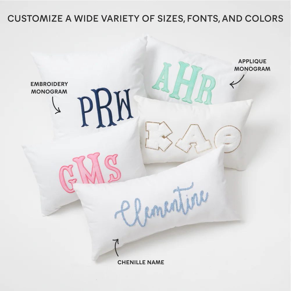 Large Custom Name Chenille Embroidered Lumbar Pillow