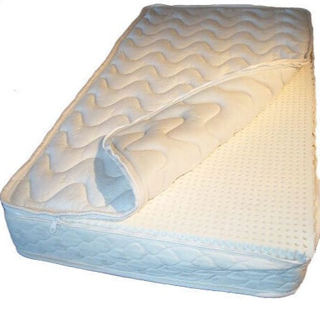 100% Natural Talalay Latex Core and convoluted latex layers provide firm yet comfortable support. - Reversible Latex Layers allow mattress to be Firm while infant very young and more comfortable as child grows.