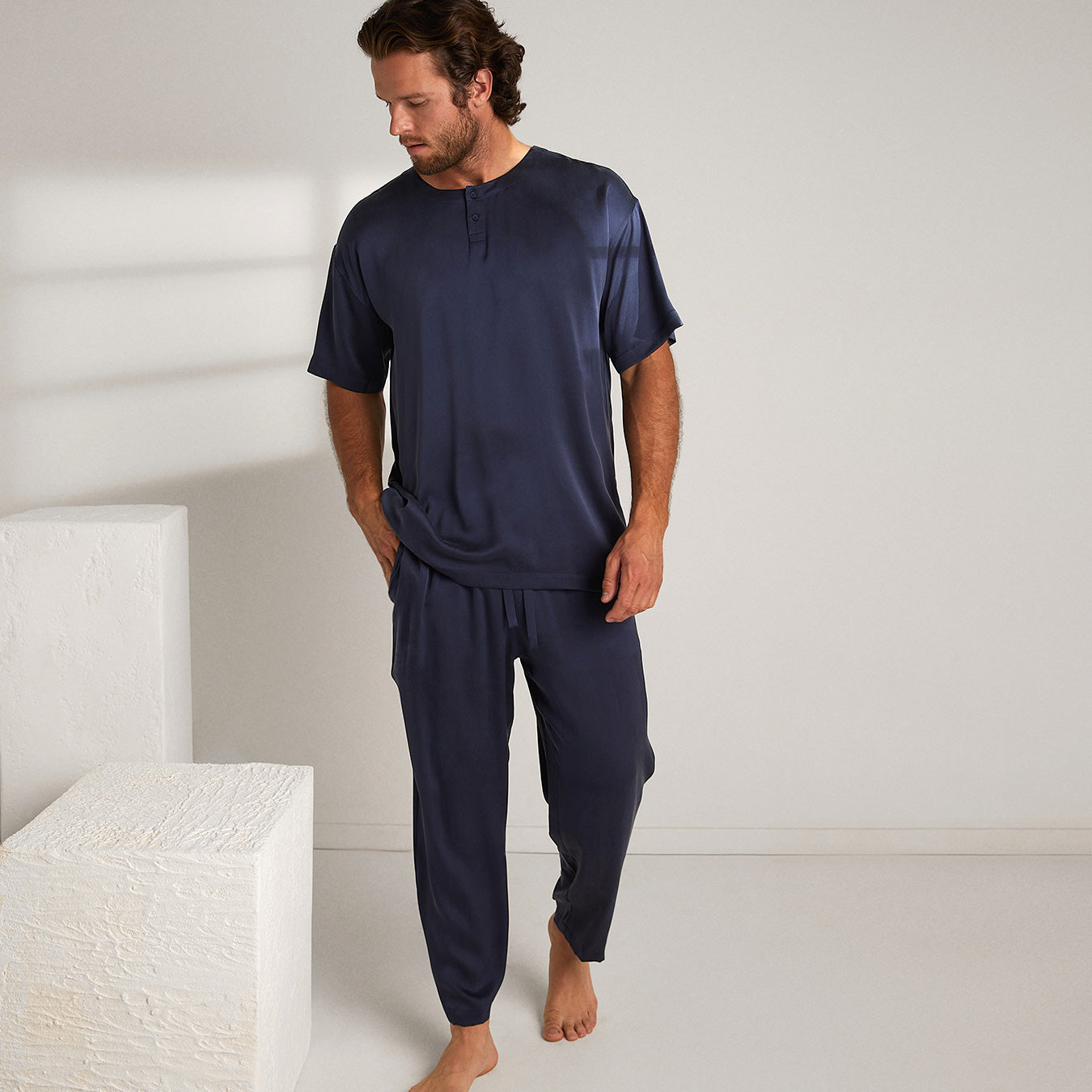 Open neckline and a relaxed, drop shoulder for comfort and ease of movement. Bottoms feature deep pockets, a drop crotch and a wide encased waistband with a drawcord to allow for a customizable fit.