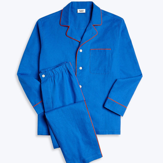 Designed in-house, by our sleep experts. The Milton Pajama Set looks great in bed, at the beach, or at brunch. Made in a linen-cotton blend, the Milton is comfortably oversized with piping details. The pants have side seam pockets, a back pocket, and piping detail.