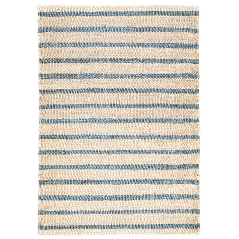 Blending a classic, Swedish Blue stripe with natural ground, this heftier flatwoven rug becomes a versatile, room-anchoring staple. Hand-made from hardworking jute to create a harmonious feeling of casual comfort, natural texture, and effortless style in any room. Sustainable, biodegradable, and renewable, jute adds orgasmic character and rustic chic to any interior.