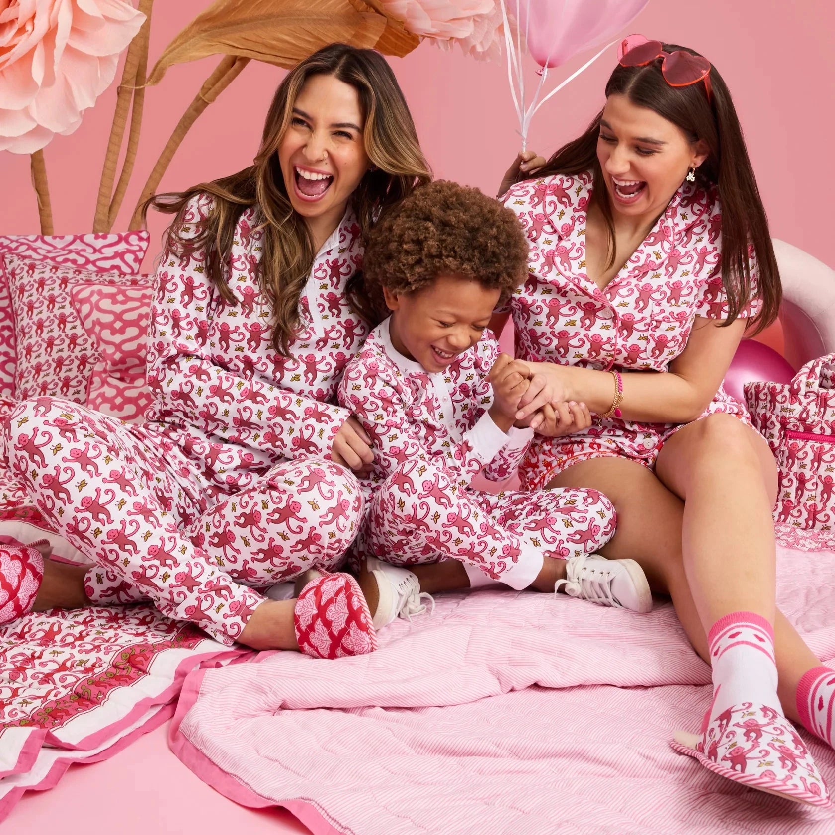 We took the monkeys out of the barrel, babe! Thisoriginal print comes packed with fun on 100% premium cotton in a matching top and bottom set. Get ready to cozy up for that movie marathon with the whole fam - this tangle of fun comes in kids, men's, and infant styles!