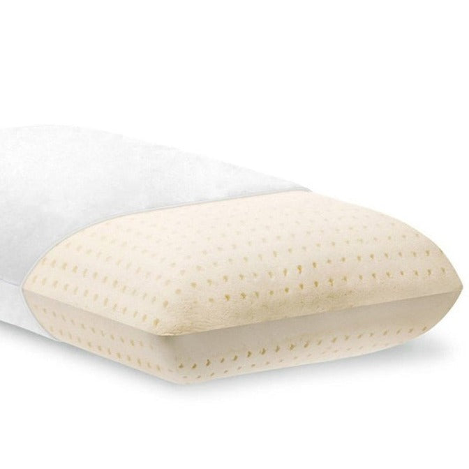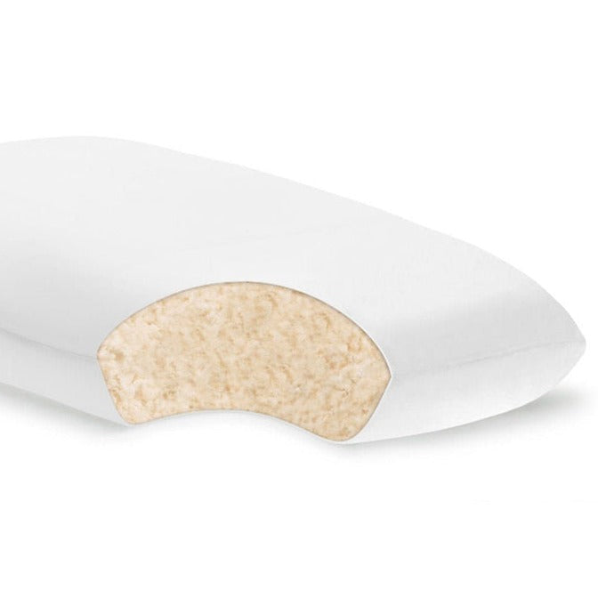 Our natural latex pillow has a light and fluffy feel, yet offers cradling support for your head while you sleep. The solid version is made with a high-quality cotton cover and Arpico organic latex, while the shredded version is made from natural talalay latex and kapok. The solid version is made with solid natural talalay latex wrapped in a luxurious cotton sateen cover, while the shredded version is made with GOLS organic shredded latex + natural kapok, wrapped in a GOTS certified organic cotton cover, both options providing an ergonomically-optimized and healthy sleep experience.