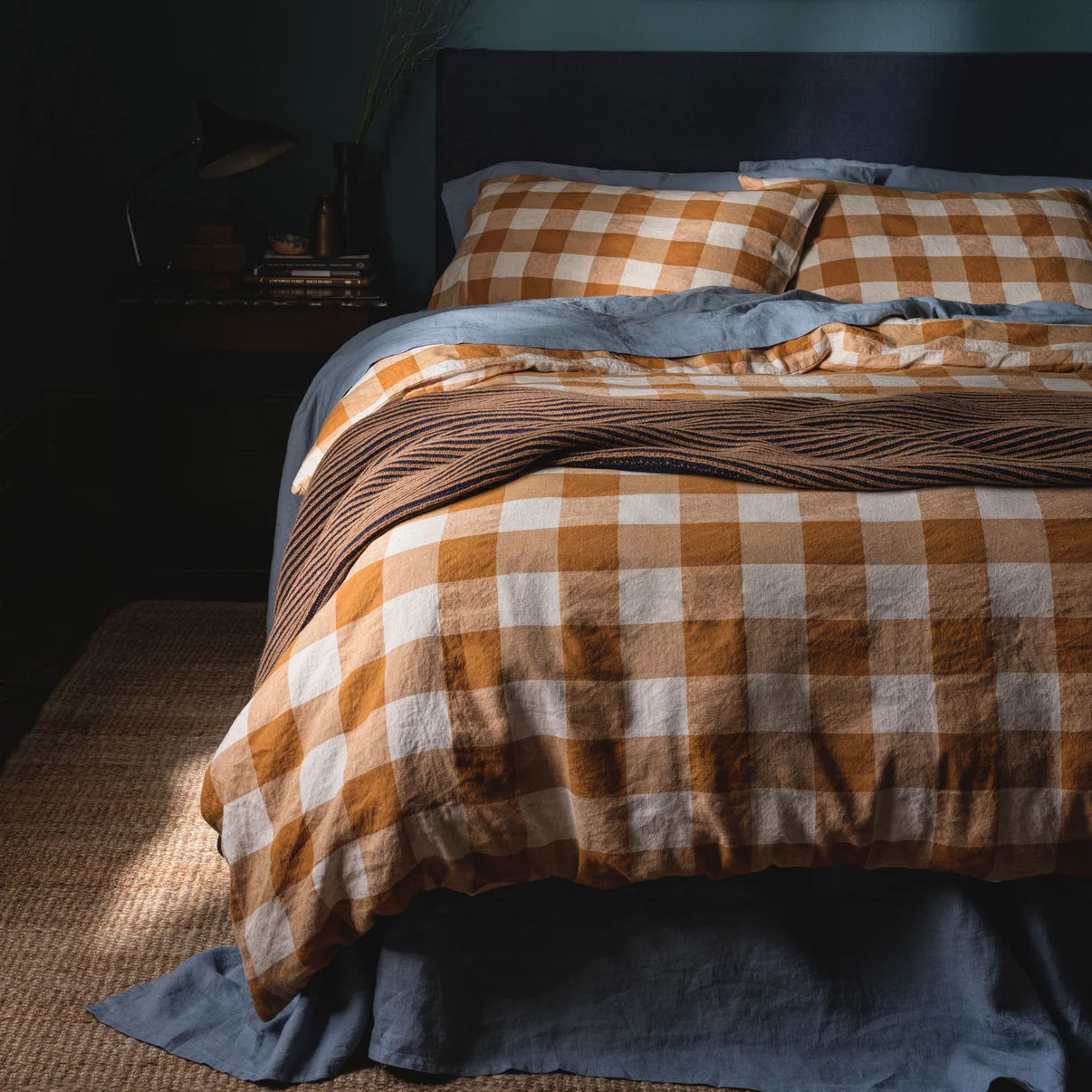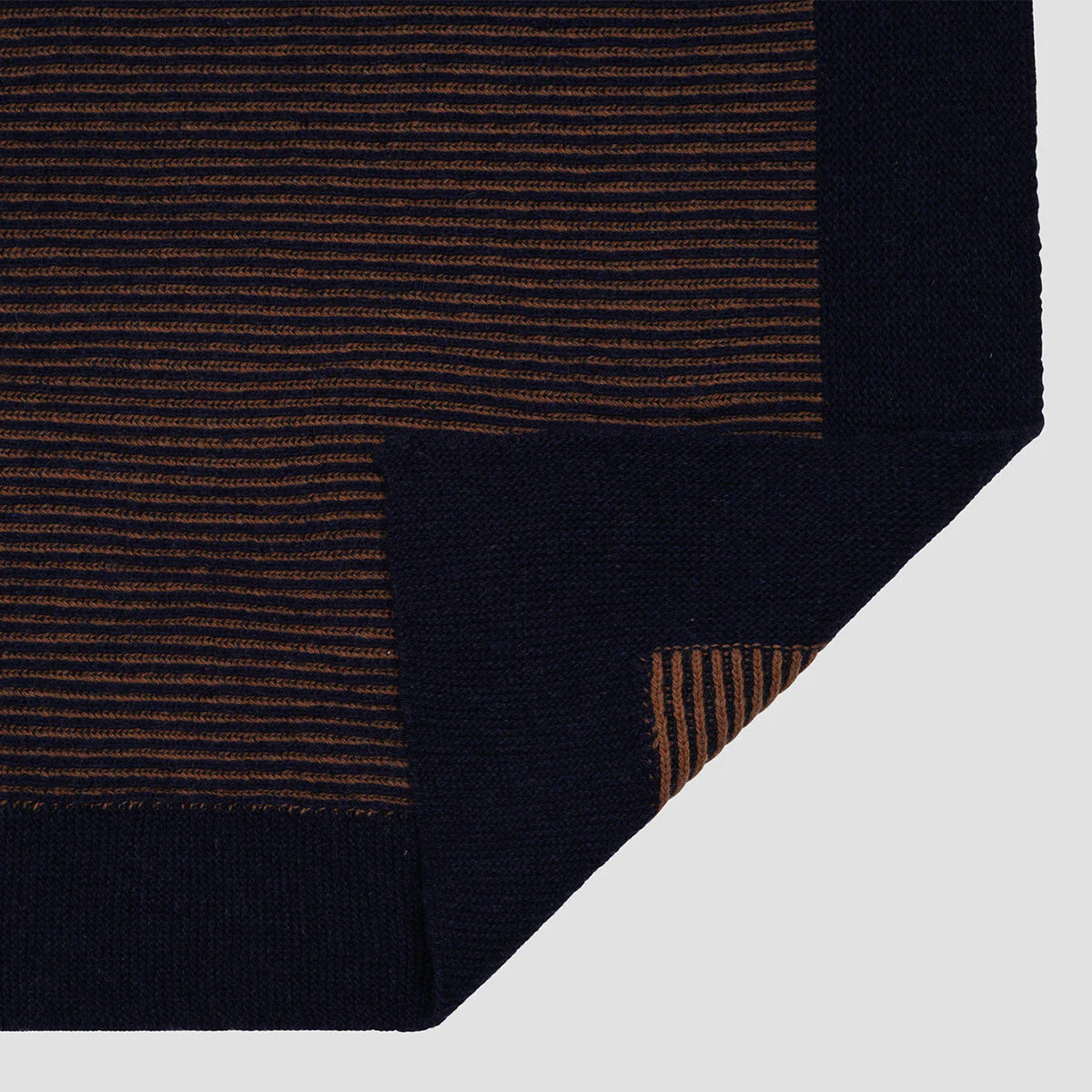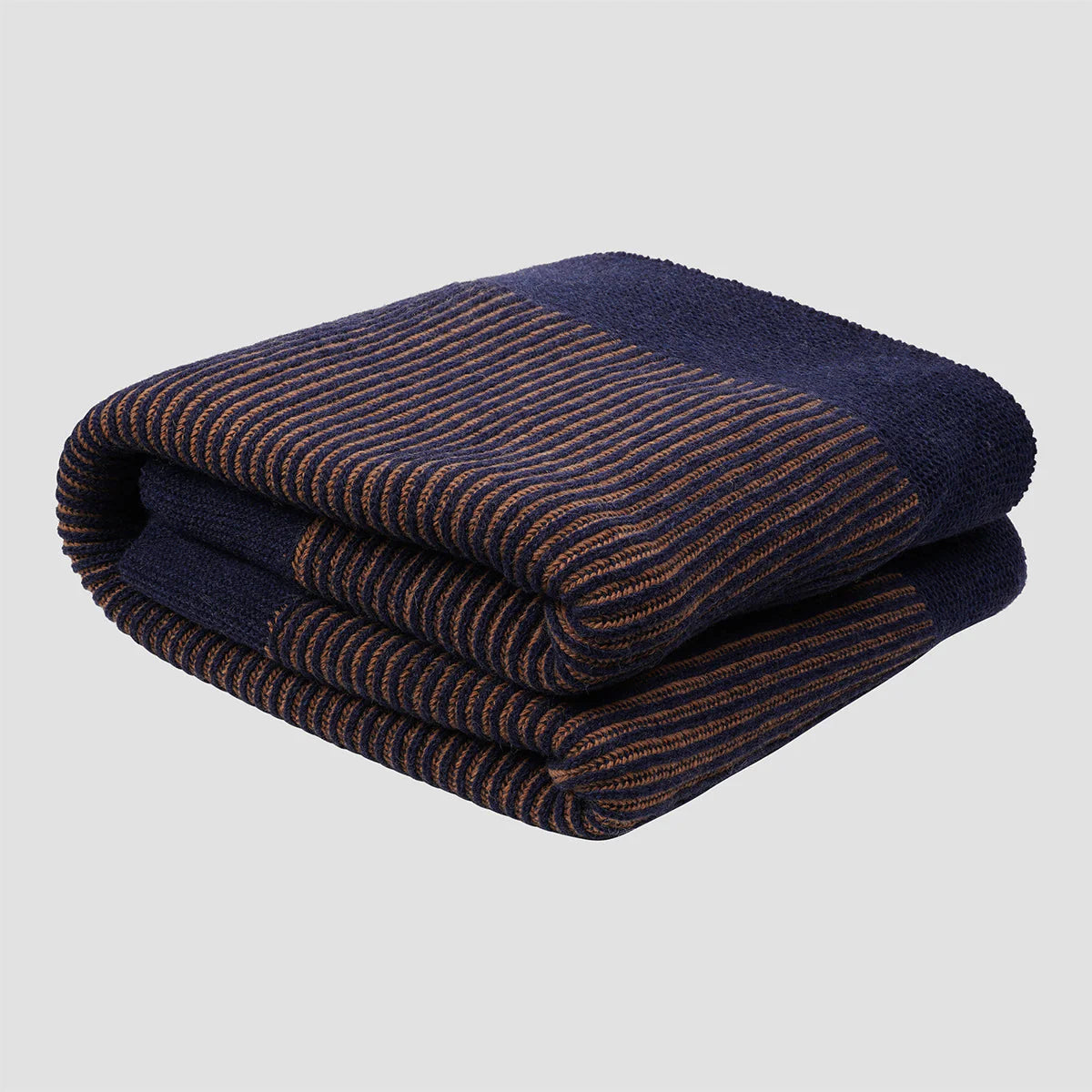 Reminiscent of handcrafted knitwear, our Navy striped knitted throw features alternating weaves in dark navy and warm caramel tones. Woven from a wool blend, these throws are super soft and versatile. Add to the end of your bed for a cozy finishing touch, or drape over an armchair for an effortless look.