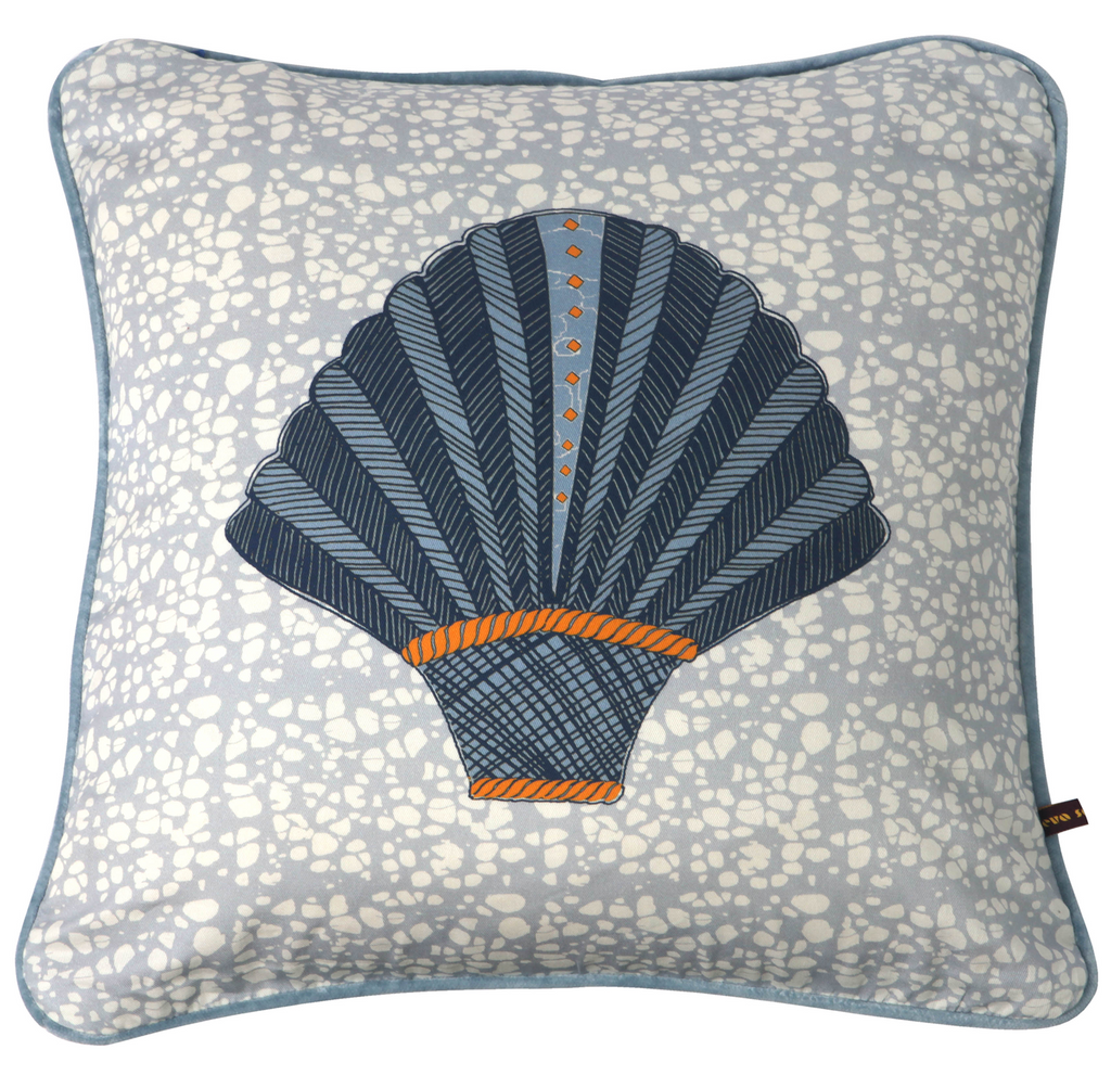 The cushion comes with a blue velvet backing and matching piping and is filled with a luxurious feather pad for a sumptuously plump finish.