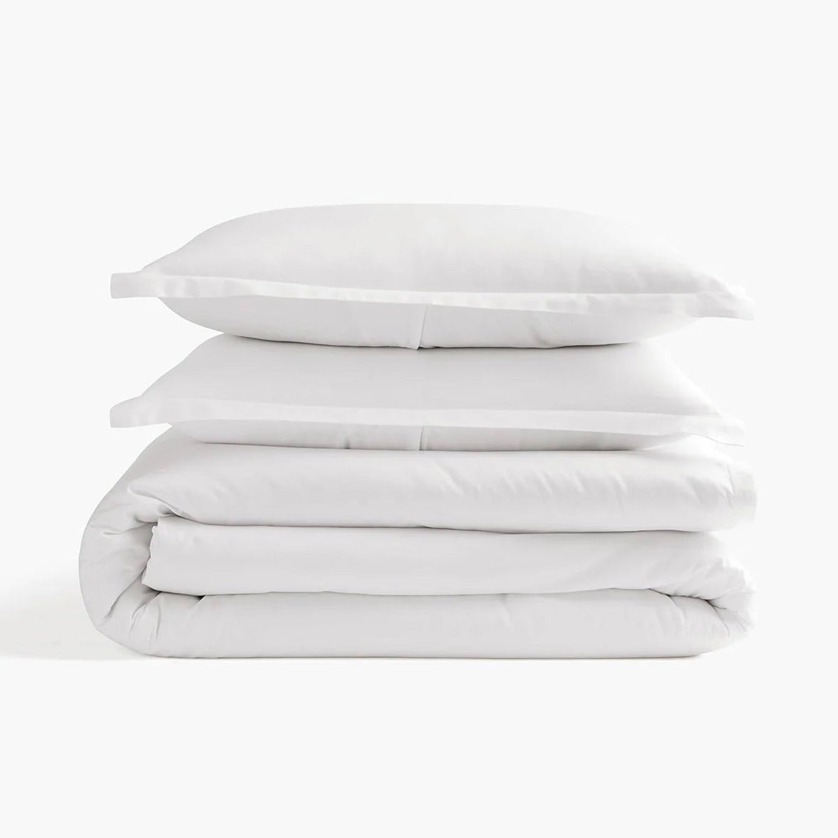 Crafted from strong, long-staple organic cotton fiber and durable single-ply construction, our exceptionally smooth Organic Sateen Duvet Set features a 300 thread count that's more optimal and structurally sound for the longer-lasting duvet. Thanks to a more compact weave, its both buttery soft and naturally wrinkle-resistant.