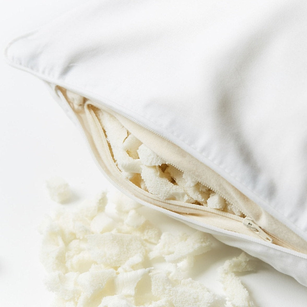 Harvested by tapping trees, organic Dunlop latex naturally transforms your sleep experience. This renewable, chemical-free, and compostable foam is naturally breathable and resistant to common irritants like mold, mildew, and dust mites. We encased these fluffy shreds of naturally hypoallergenic latex in an interior layer of jersey knit cotton, followed by a removable pillow protector in densely woven, 400-thread count sateen.