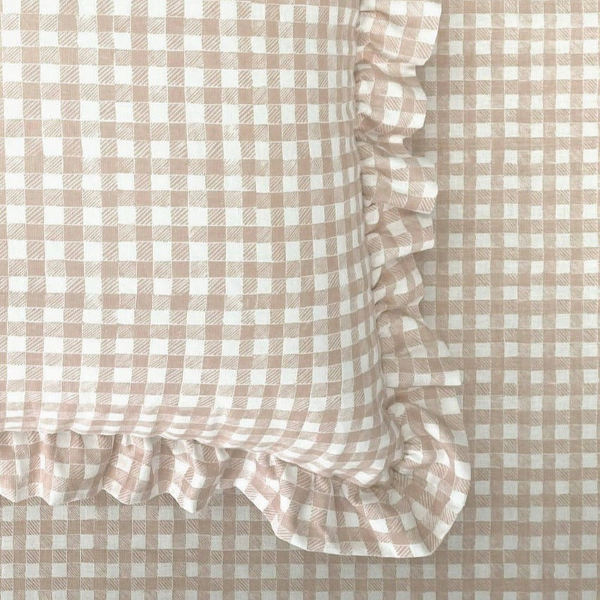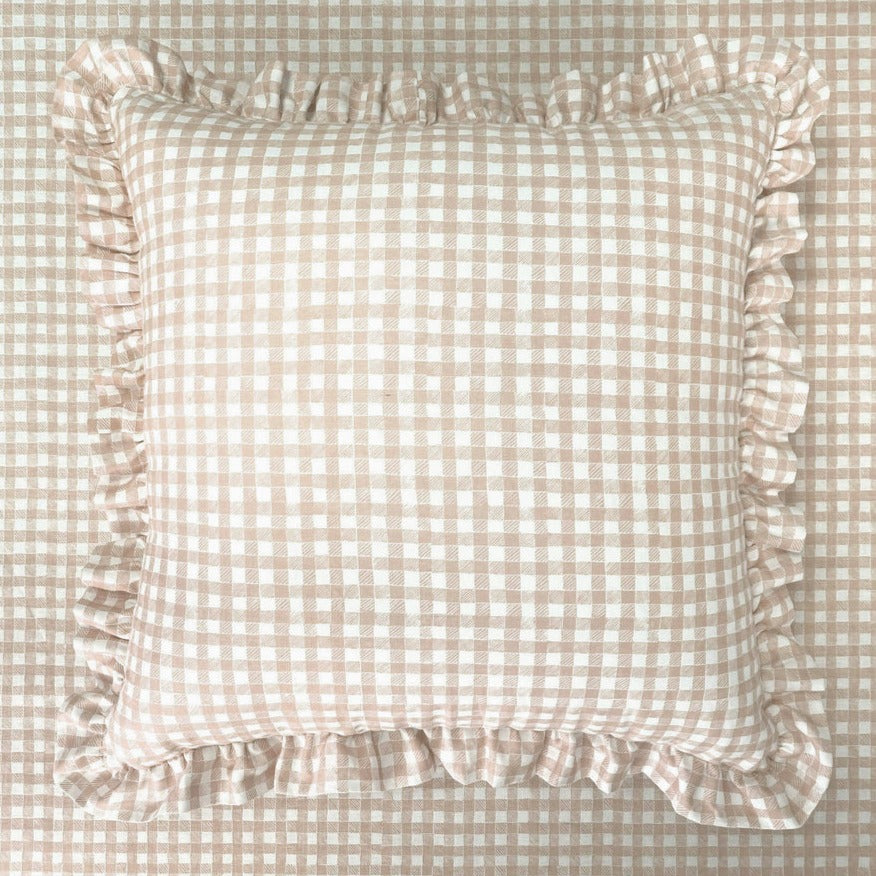 Ruffle Floor Cushion - Gingham Beige