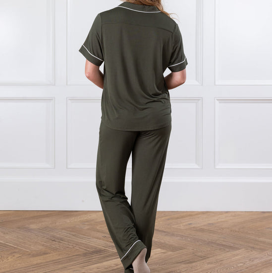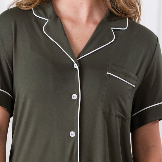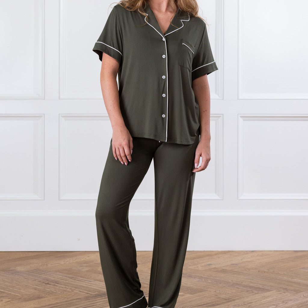 Bedtime can’t come soon enough when you’re waiting to slip into the soon-to-be star of your sleep routine, our Short Sleeve & Pant Pajama Set. Stretch-knit bamboo viscose prevents night sweats with a drapey silhouette that resists bunching (no wonder it made Oprah's favorite things list!). Includes a pocketed button-up and drawstring pants with elegant contrast piping throughout.