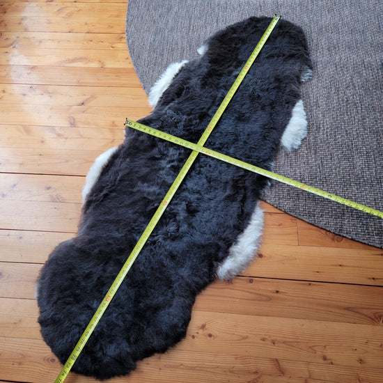 Each hide utilized to craft this piece is totally unique and naturally a natural black color trimmed with white edges. This 2 pelt sheepskin is supple but also lays beautifully flat.