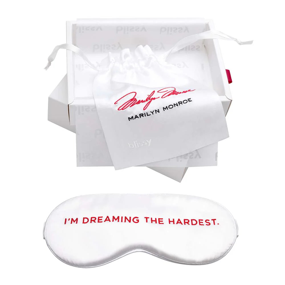 There's something about the alluring magnificence of silk that is tantamount to the innate star power of Marilyn Monroe. To celebrate the authenticity, self-acceptance, and self-confidence of Marilyn, Blissy empowers you to invest in yourself with our line of silk sleep essentials and beauty products. Blissy's Marilyn MonroeSilkSleep Masks are beautifully designed and a must-have beauty sleep essential. Handmade, crafted from silk, and gentle on your skin. These Sleep Masks are the perfect complement to your beauty routine. Rest like you never have before with Blissy. Includes Blissy silk carrying case for traveling.