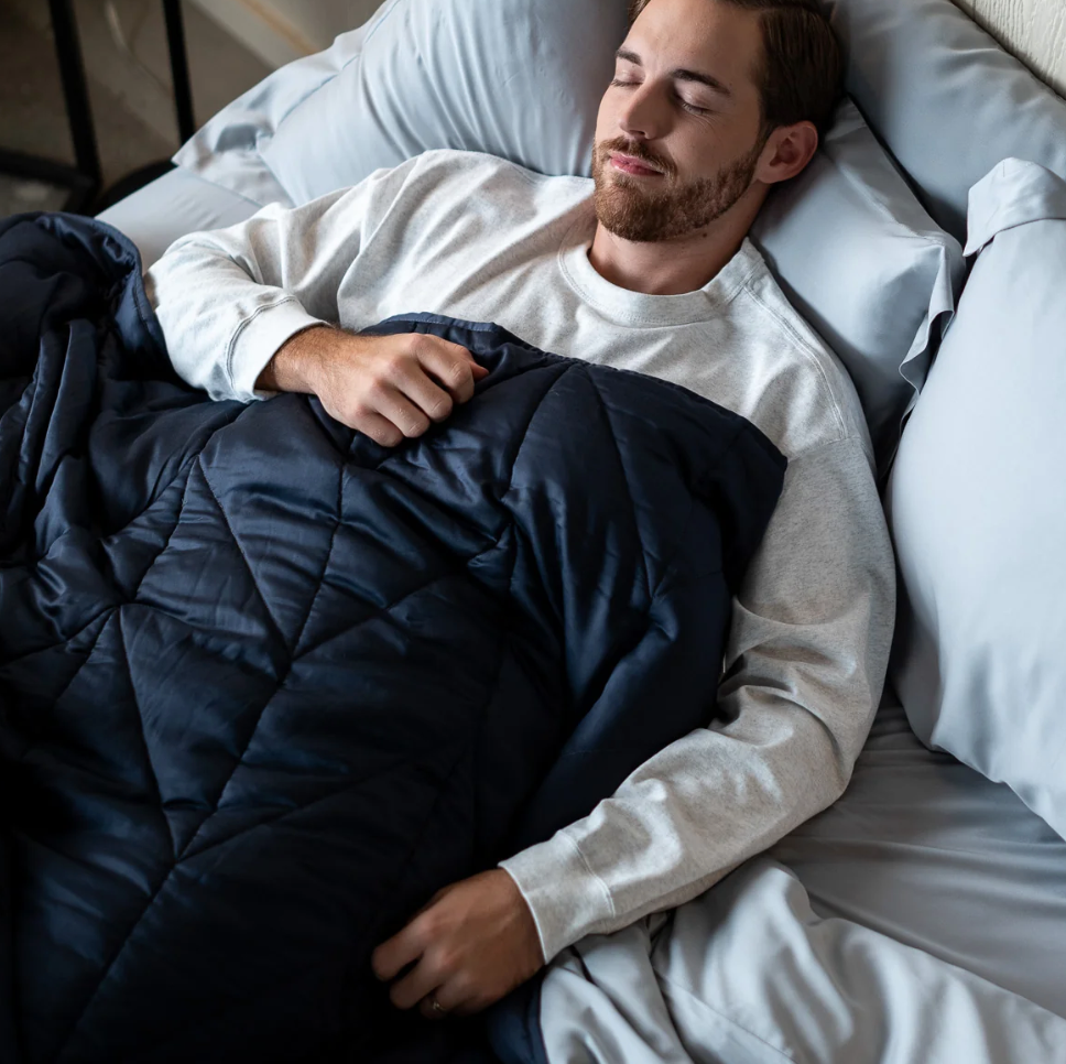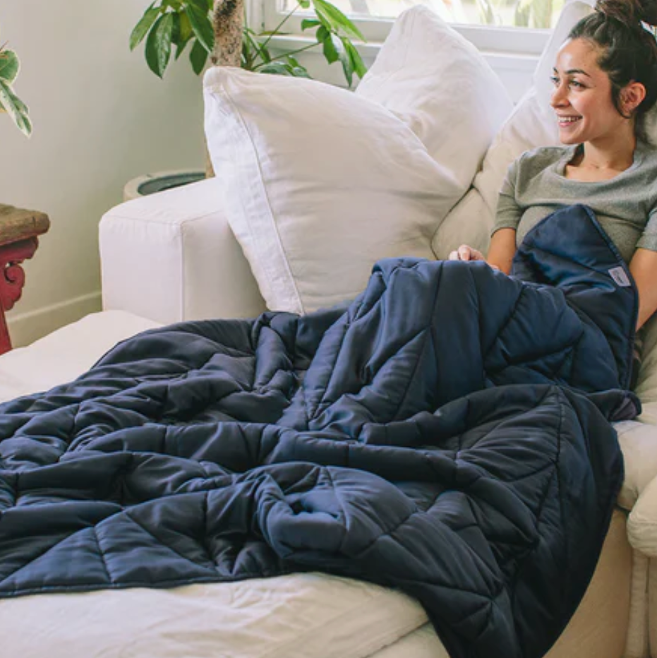Wrap yourself in a calm, comforting embrace with our Luxury Weighted Blanket. Ideal for "nesting" on the couch or your bed, it offers a two-toned grey pewter and slate cover for double the comfort.
