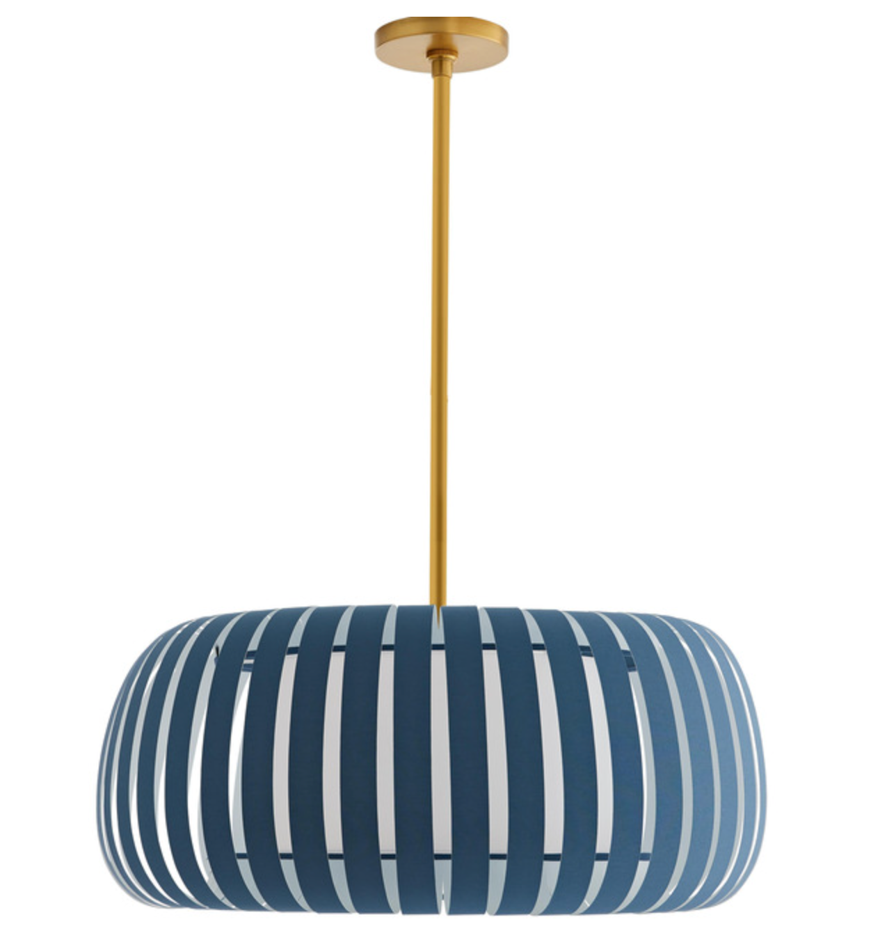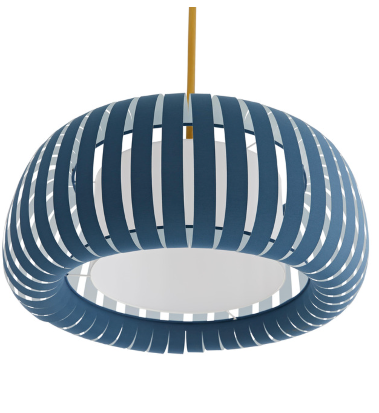 The Wilson Pendant adds a clean unique look to your interior space. Strips of colored microfiber banding surround the inner microfiber diffuser and cast warm linear shadows across your room.