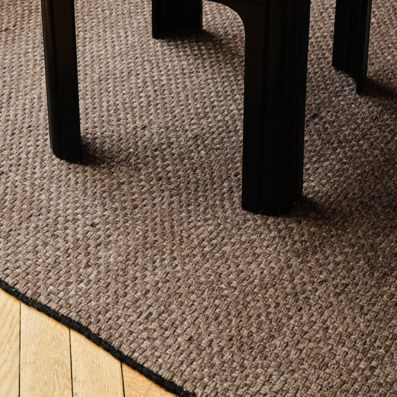 Zero Basket is crafted without dye uncoloured celebrating the natural quality and characteristics of wool in its purest form. The classic basket-woven design not only highlights the rich texture but also makes the rug soft and inviting. It is elegantly outlined by a dark contrast binding and is available in three different shades. The Zero Basket collection is handmade in small batches. Only a few in each size are available.
